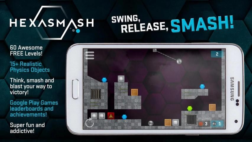 Hexasmash dibawa ke anda oleh pengembang indie terbaik fisika teka-teki Laserbreak, Hexasmash 2 dan CELL 13.