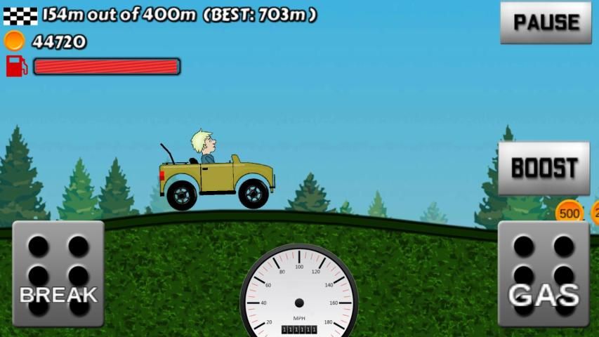 Control your car and climb hills, uphills, ramps and down hills. As you go uphills, collect coins and gain points by doing flips and hangtimes. With these coins you can upgrade your car or buy a new one. Gain bonuses from tricks and collect coins to upgrade your car and reach even higher distances as you become the best uphill racer. Hill Climb Racer Edition has the following features: