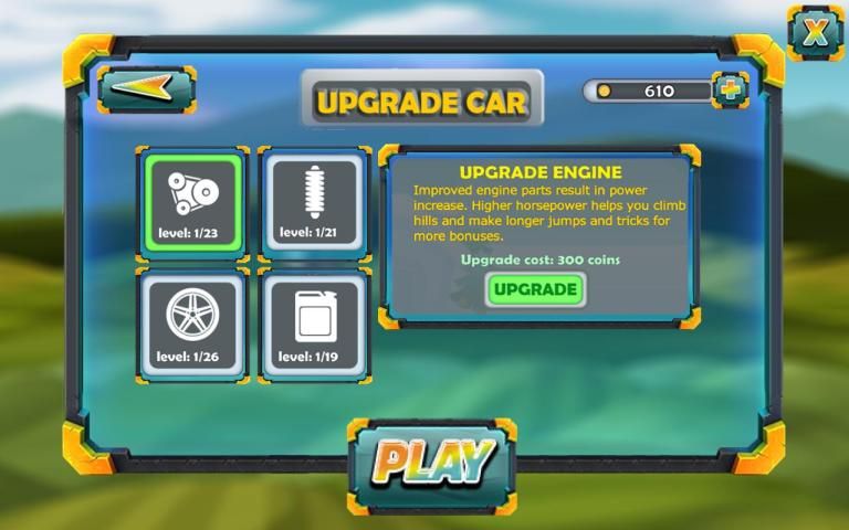 Mengendalikan mobil Siput atau sepeda untuk mendaki bukit dengan kontrol yang paling realistis untuk menghadapi tantangan menanjak & menurun lingkungan yang unik. Mendapatkan bonus dari trik dan mengumpulkan koin untuk meng-upgrade Siput mobil dan mencapai jarak yang lebih tinggi