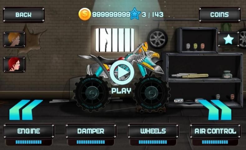 Pilih dari beberapa kendaraan yang masing-masing memberikan sesuatu yang berbeda dalam pencarian ketinggian tinggi Anda. jantung Anda akan berdebar saat Anda mencoba untuk mendaki bukit terjal dan mengatasi medan berbatu. Mendorong kendaraan Anda untuk membatasi dan memenangkan hak membual
