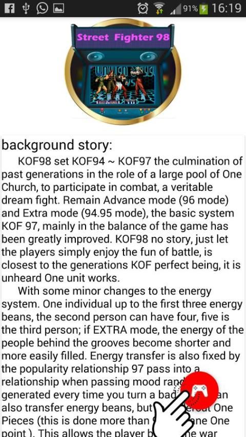 "King of Fighters 97 98" oleh SNK Jepang yang dirilis pada tahun 1997, sebuah game pertarungan arcade, dibandingkan dengan tiga versi pertama King of Fist yang memiliki semua aspek perbaikan, adalah tinju dari seri yang matang. Saat ini, versi perbaikan dari "K.O.F 98" masih digandrungi oleh para pemain