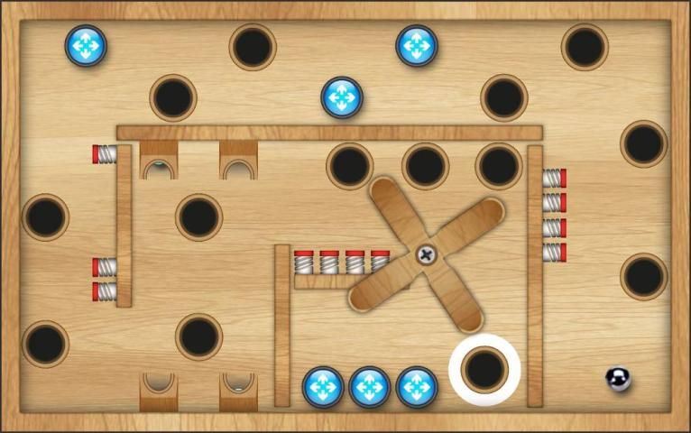 Прокатите шарик от старта до финиша не провалившись в отверстия на игровом поле. Остерегайтесь отталкивающих и пружинящих объектов. Следите за вращающимися деталями.