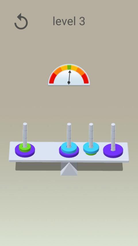 Lingkaran berwarna yang berbeda pada jungkat-jungkit, gerakkan mereka untuk menyeimbangkan jungkat-jungkit.