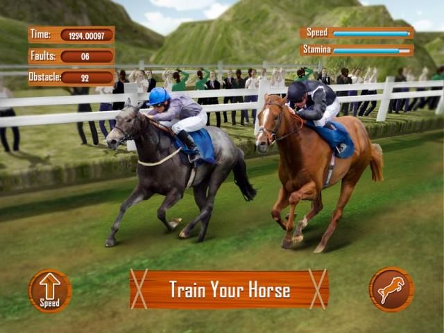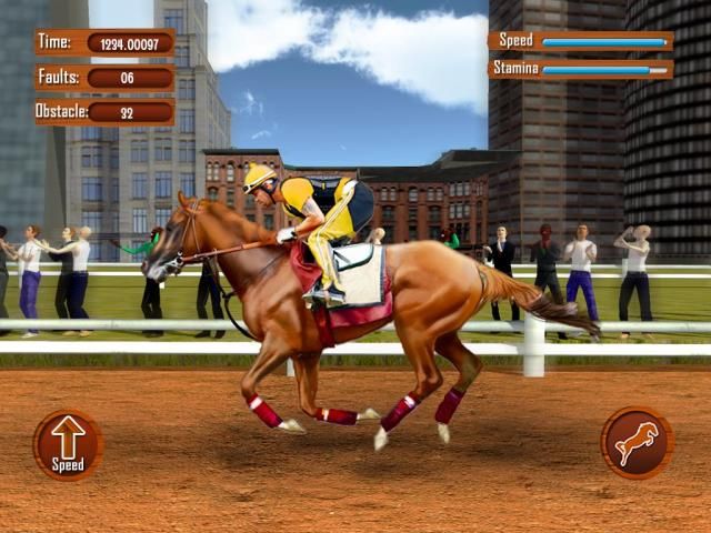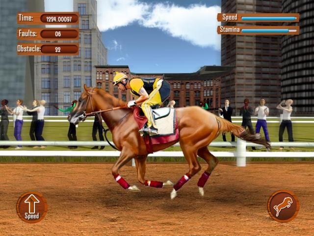 Kecepatan Anda tergantung pada seberapa cepat Anda tekan. Tekan dan ras sulit untuk menang. Ingatlah untuk menjaga stamina atau Anda bisa kehilangan cara Anda untuk kemenangan. Pelana dan mengarahkan kuda Anda untuk mengklaim kejuaraan kuda utama.