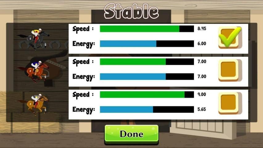 Pick one of the three horses - each with different levels of energy and speed.