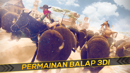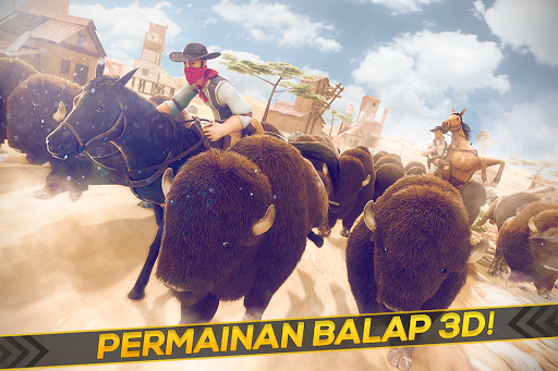 Pelana kuda anda, sesuaikan taji dan melibatkan diri dalam perlombaan ini menakjubkan, di mana kerbau marah akan mencoba untuk membuat anda jatuh dari kuda anda.