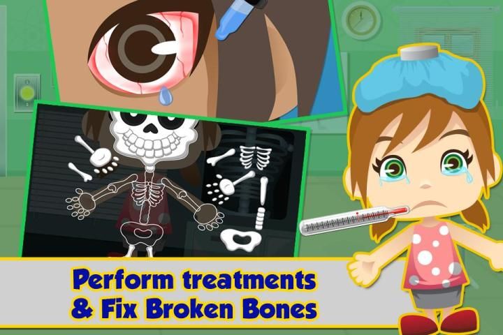 Mengubah diri menjadi seorang dokter bintang profesional, mengoperasikan klinik dan rumah sakit sendiri, menyembuhkan berbagai jenis pasien dengan berbagai penyakit bersama dengan asisten perawat Anda! Pilih dari begitu banyak tingkatan sebagai permainan berlangsung di klinik Anda. Membuka mereka dan kemajuan untuk perawatan lebih seperti, membunuh bakteri, perut penyembuhan, tulang pengobatan, perawatan gigi dan banyak lagi.
