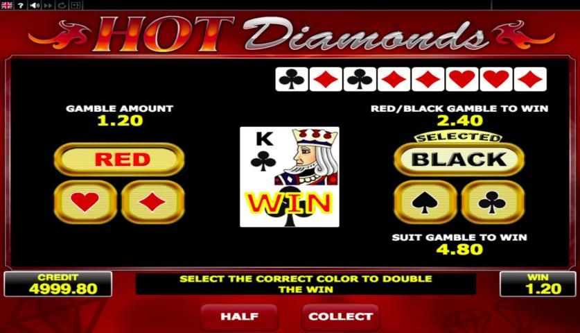 Hot mesin Diamonds game adalah kesempatan Anda untuk menerima hingga 12.500 kredit untuk satu putaran. Selain itu, ada permainan risiko, yang memungkinkan Anda untuk memenangkan lebih banyak lagi. Sebuah simbol dengan tulisan Bonus akan memberikan 10 bebas berputar gulungan. Kemenangan terbesar dijamin untuk kombinasi ruby.