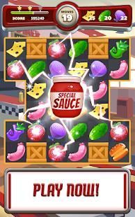 - Swap dan pertandingan 3 atau lebih bahan-bahan dari jenis yang sama meledak mereka. Acar, chip, hamburger, saus dan yummy soda minuman ringan.