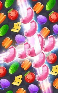 - Swap and match 3 or more ingredients of the same kind to burst them. Pickles, chips, hamburgers, sauces and yummy soda soft drinks.