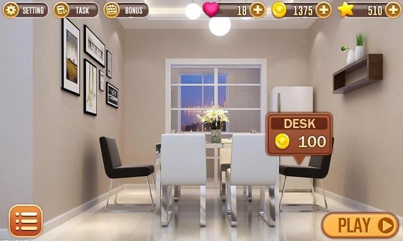 Merombak rumah dengan gaya Rumah Pertanian atau menjadi Modern? Anda yang memutuskan, Anda mendesain! Merancang dan merenovasi berbagai gaya kamar, termasuk ruang keluarga yang ramah keluarga, dapur pedesaan, kamar mandi penuh gaya, dan kamar tidur apik. Bantu klien mulai dari pengantin baru hingga selebriti Hollywood, dan keliling dunia ke Tokyo, Paris, dan Maroko. Ekspresikan diri Anda dengan berbagai furnitur desainer kelas atas, pencahayaan, lantai, dan dekorasi lainnya. Alami gameplay yang membuat ketagihan dengan mode offline sehingga Anda dapat membawa game dari rumah ke langit! Ditantang dengan lebih dari 1000 teka-teki pertandingan 3 dan puluhan mode permainan untuk kesenangan santai tanpa akhir. Pembaruan konten yang sering, segar, dan gratis dengan tantangan desain interior dan eksterior yang cantik, denah lantai, taman luar ruangan, lansekap, barang musiman dan banyak lagi!