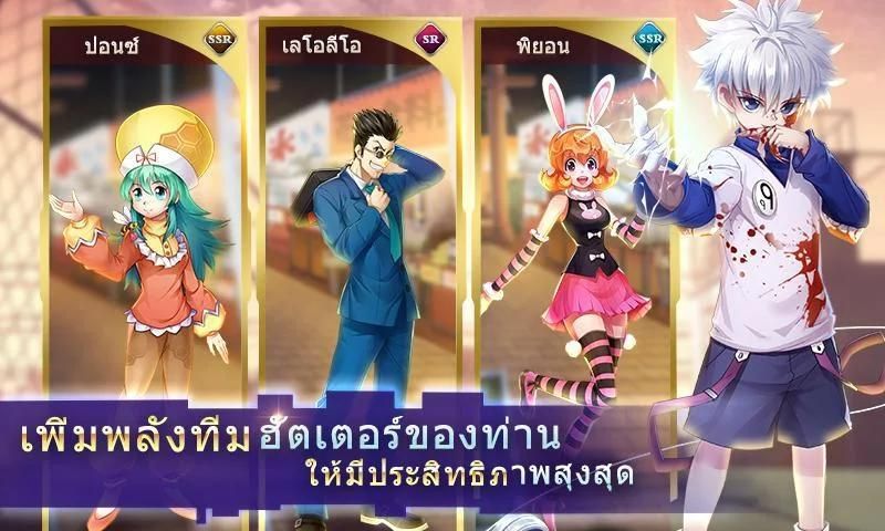 เรื่องราวการ์ตูนสุดคลาสสิกกลับใหม่อีกแล้ว!!! ศึกสงครามของฮันเอตร์กับกลุ่มสไปเดอ ในเกมนี้คุณต้องจับกลุ่มโจรเงามายา เข้าร่วมลานประลองกลางเวหา แค่ล็อกอินก็ได้รับตัวละครSRที่หายาก สร้างกลุ่มโจรฮันเอตร์ของตนเอง