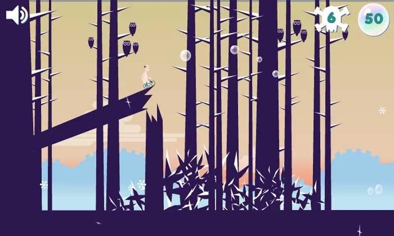 A man wakes up from cryogenic suspension to find the world in the grips of an ice age...and he's not exactly dressed for the occasion! Ride you bike through the frozen wastelands, avoiding any obstacles in your way.Trial and error will pave the way but remembering the path might prove harder than you expect. Collect as many bubbles as possible but be prepared for plenty of amusing fatalities along the way. If only dying was this much fun in life!