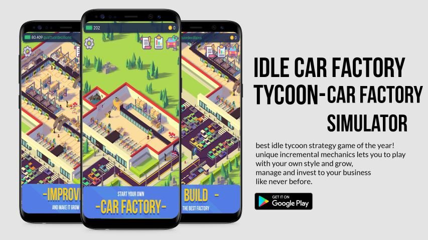 Idle Car Factory Tycoon - Car Factory Simulator is super easy tycoon game to play but hard to master idlegame. where you must start from small factory and just making a sparepart of car. But with your decission and your strategy, you make your car factory be a biggest car factory in the world.