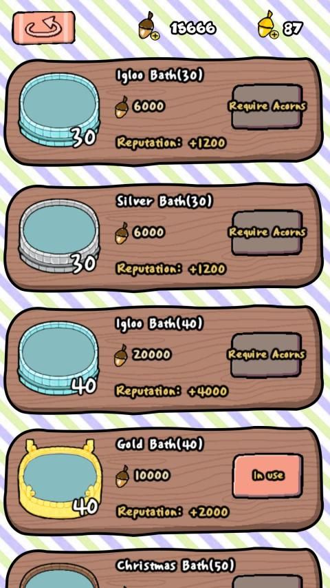 Invite your cute animal friends to your hot spring and buy bathing facilities to create a personalized hot spring bar. Wooden bath pool, silver bath pool, marble bath pool, golden bath pool... your animal friends will enjoy the amazing hot spring and be willing to pay money for this!