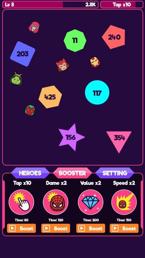 ● Or enjoy idle game: Buy super heroes to support you kill the boxes