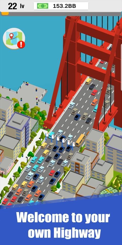 Idle Highway Car Toll Game where you manage the cars, highway and toll with incremental and clicker gameplay. Many different CARS, MAPS with BRIDGES and many UPGRADES to choose from!
