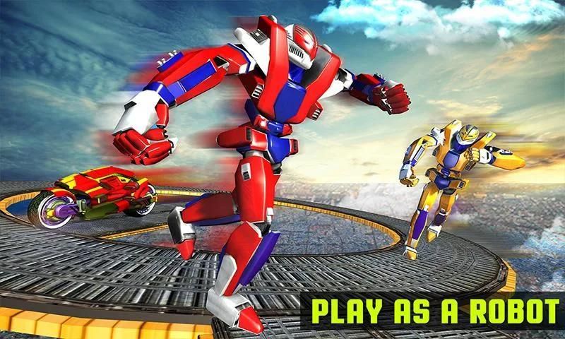 Are you ready for an impossible bike racing game with crazy motorcycle bike stunt challenge and transform robot. This is one of the best bike riding games where you are in the sky high impossible grand paths and perform crazy motorcycle stunts as a fast bike with robot transformation skills. Master the extreme stunt bike rider skills with a craft to showcase impossible biker stunts and become the hero transform robot bike rider in the futuristic steel robot bike racing adventure.