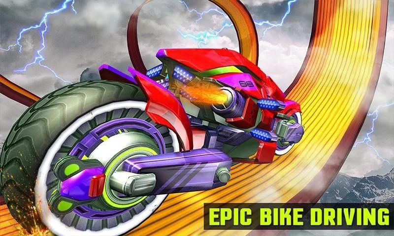 Download now for FREE Impossible Bike Racing Tracks Transform Robot Game Simulator. It is one of its kind that offer experience of impossible tracks driving with amazing stunt bike racing game.