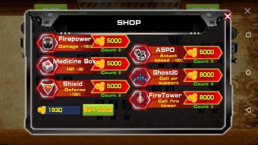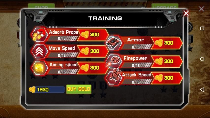 - 6 jenis sistem tangki upgrade: Armor, daya Api, Kecepatan serang, kecepatan beranimasi, Kecepatan bergerak, alat peraya ...