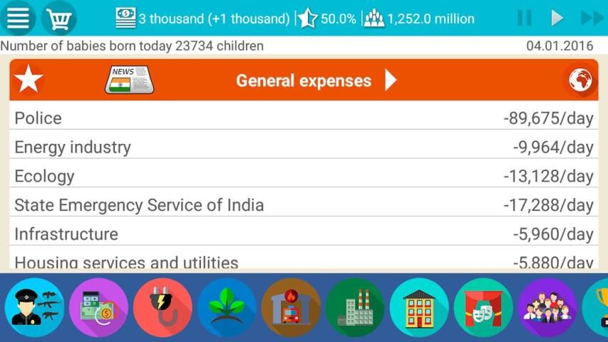 Thank you for playing the "India Simulator 2". Enjoy one of the most exciting strategies.