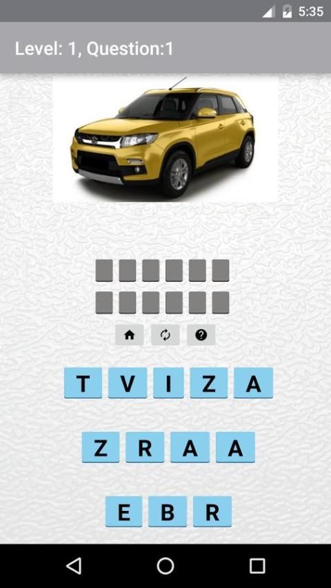 Ini adalah permainan puzzle dengan http://dividapps.com di mana Anda harus menebak nama-nama mobil India dengan melihat gambar mereka.