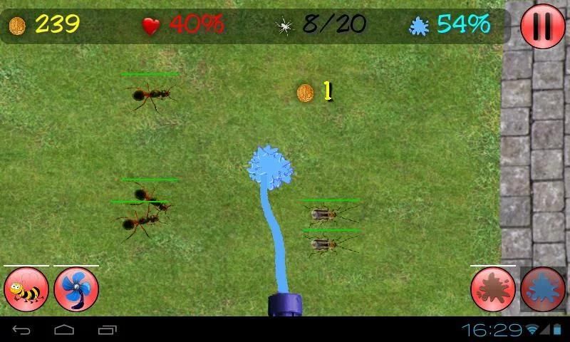 Gunakan selang untuk mengobati serangga dengan air, mendapatkan uang dan meng-upgrade senjata Anda. Selang membantu Anda untuk pertahanan dan membeli upgrade.
