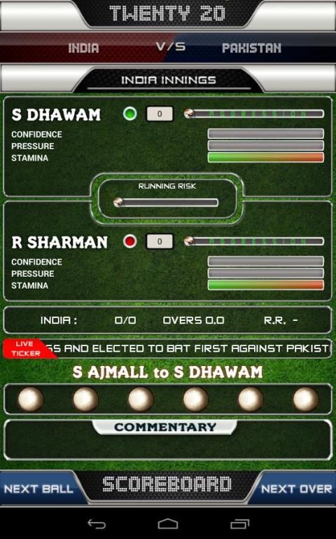 - Saat memukul Anda akan diberikan dua kontrol untuk mengatur, agresi batsman dan risiko berjalan.