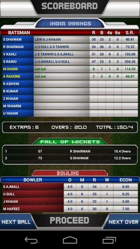 - Selain itu ada bagian statistik dalam permainan juga di mana catatan karir setiap pemain akan disimpan untuk referensi di masa mendatang dan perbandingan seperti jumlah berjalan mencetak, jumlah wickets diambil, tercepat lima puluh, perfomances terbaik dll