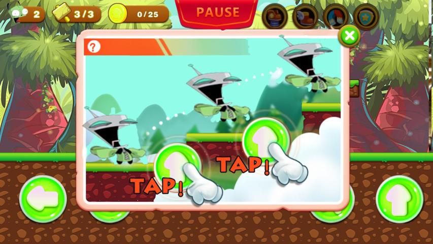 • Invader Zim renang: tekan A-Button beberapa kali untuk berenang di dunia asterix ini ... lepaskan jari Anda dari tombol untuk turun!