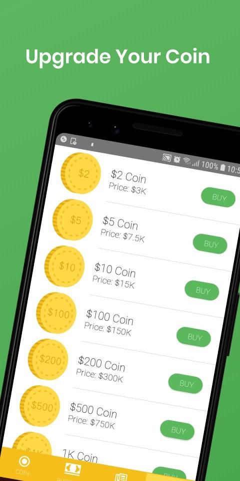 • Get as many coins as you can by tapping on the big coin. The faster you tap, the more you get!