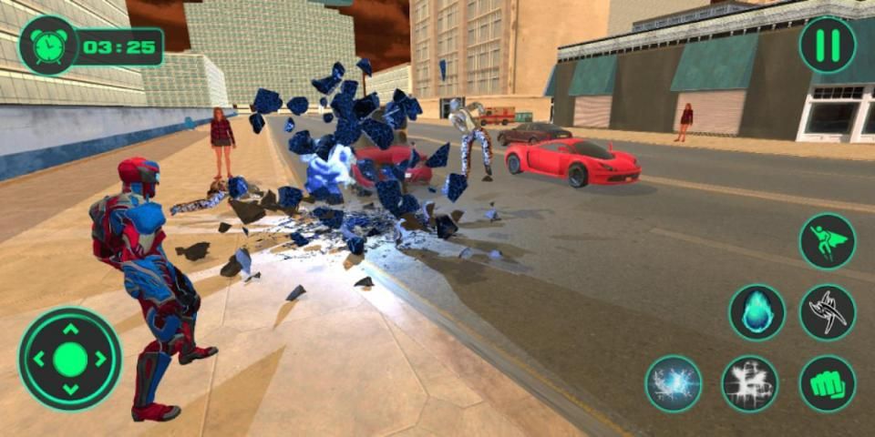Hilangkan penjahat dan tentara jalanan dari jalan-jalan kota New York. Super Hero Crime berjuang untuk mengambil Avenger dari penjahat dan gangster jalanan. Tapi mereka tidak dapat berhasil, telah berubah menjadi misi Deep Combat sehingga robot kapten terbang superhero, Real Superhero Fighter, petarung profesional, dan pejuang superhero Iron telah dipanggil untuk Pertempuran Superhero. Dan jika Anda menyelesaikan semua level, Anda akan menjadi Pahlawan utama kota dan lebih kuat.