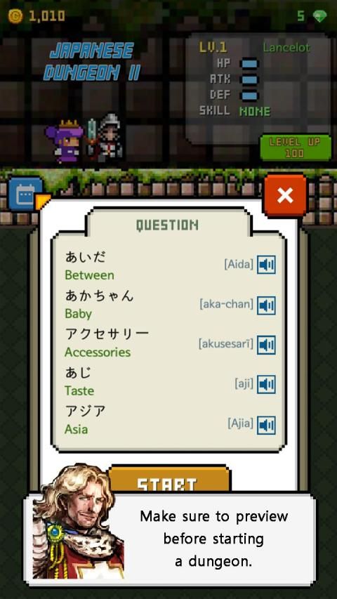 1. Level Dungeon: Anda dapat mempelajari kata-kata Jepang di level yang berbeda.