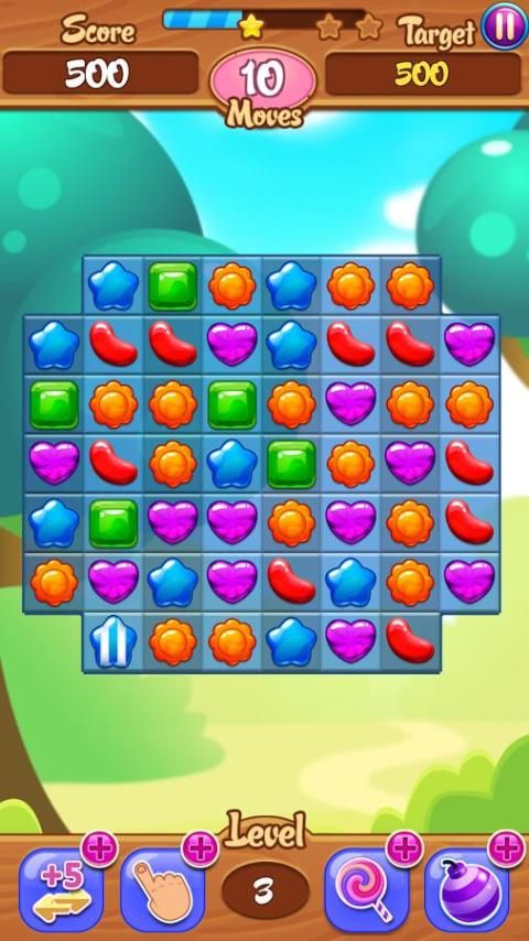 - Hubungkan tiga atau lebih yang sama ledakan permen jelly untuk mencetak poin.