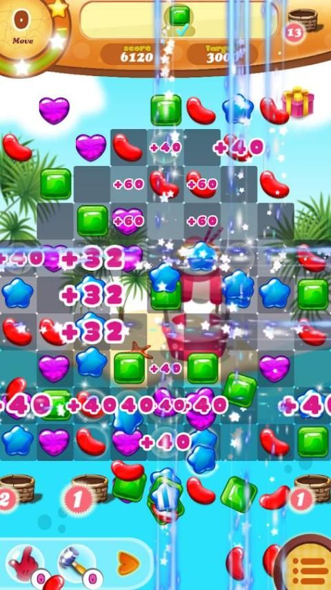 Beralih 3 pertandingan jelly warna yang sama di garis, Anda dapat beralih garis vertikal atau horizontal untuk menjatuhkan jelly.