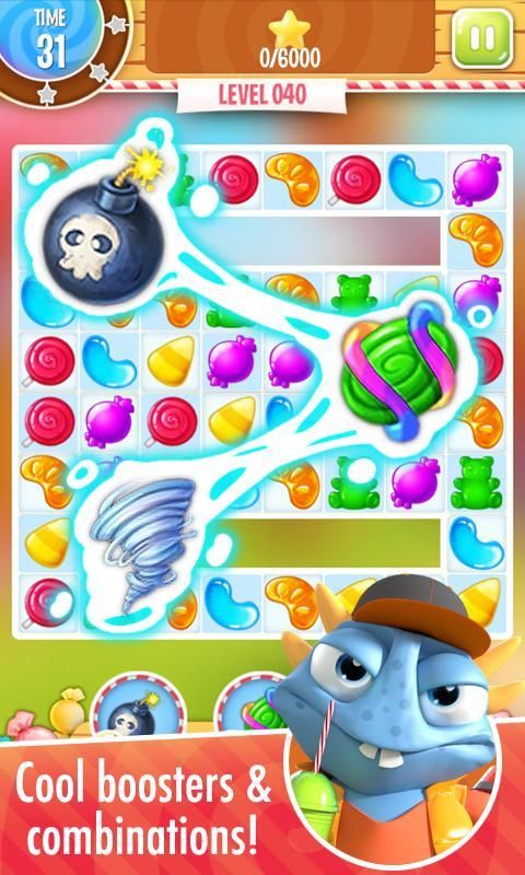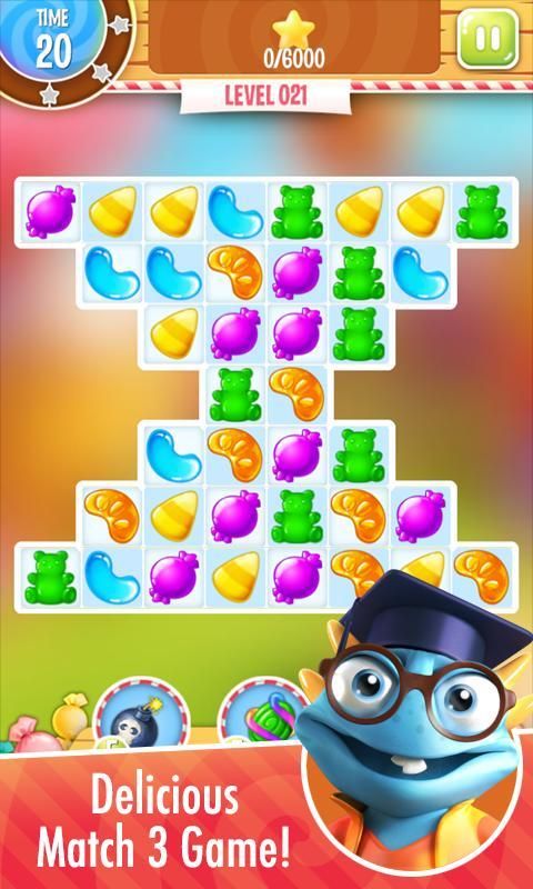 Mengumpulkan tiga-in-a-baris kombinasi permen lezat, istirahat belenggu beku dan retak hambatan cokelat, meledakkan bom permen dan shockers campuran untuk kejutan manis! Semua sambil menyelesaikan perjalanan Anda untuk membubarkan awan marshmallow dan menyelamatkan negara.