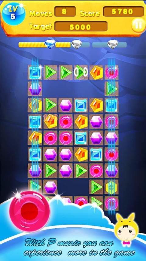 1. Hubungkan tiga atau lebih permata yang sama untuk mencetak poin.