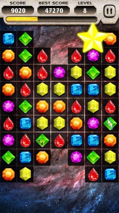 - Cocokkan perhiasan sampai transparansi papan, bintang Jewels akan muncul.