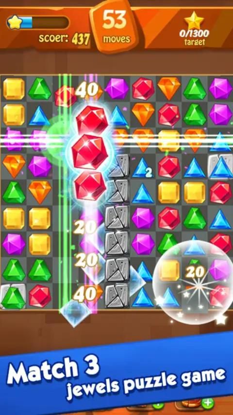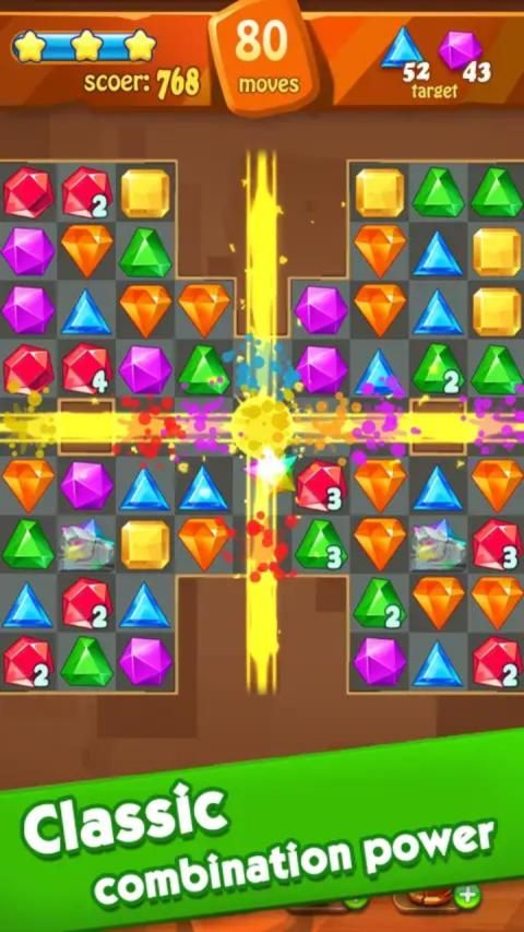 Combine special jewels to make huge chain reaction to help you pass the level.