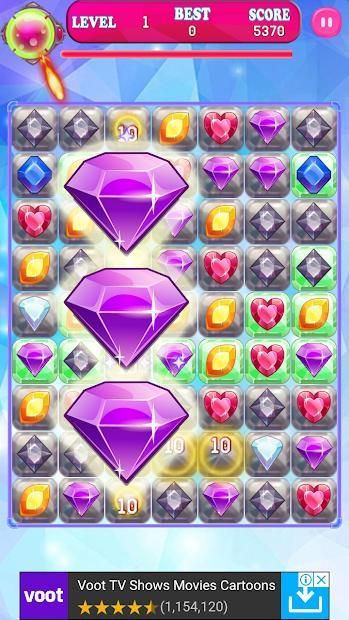 The Jewel 3-Match Crusher mobile game is an exciting journey throughout several themed levels were you can match gemstones to crush them.