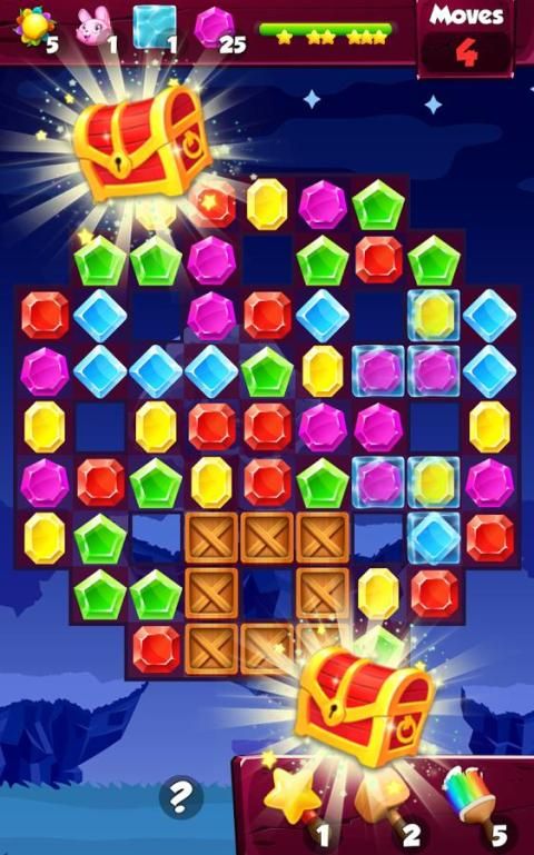 Mari perhiasan pertukaran untuk mendapatkan pertandingan 4 permata - Anda mendapatkan skor dan bom perhiasan