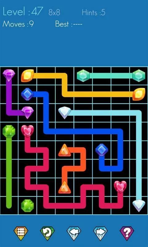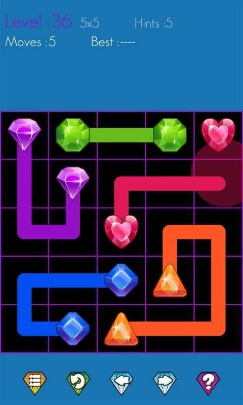 Jewels link Connect adalah permainan puzzle sederhana dan sangat adiktif! Dapatkan siap untuk pengalaman permainan menyenangkan dengan permata keren ini menghubungkan permainan! Hanya menghubungkan semua permata yang cocok dengan garis-garis untuk mengisi papan. Setiap baris harus dimulai dan diakhiri dengan permata yang sama, dan tidak harus bersinggungan dengan garis lain.