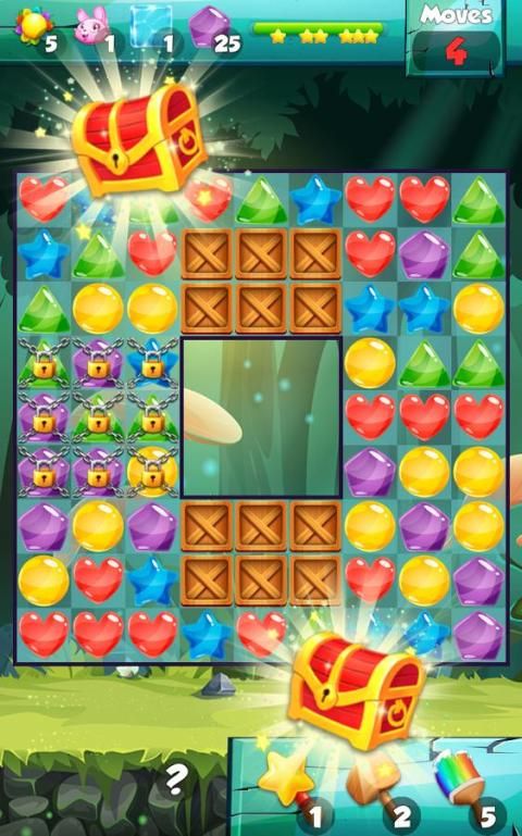 Pertandingan 5 Jewels ikuti T atau bentuk L oleh swap membuat bom Jewel. Boom Jewel bisa menghancurkan permata daerah sekitar perhiasan bom.