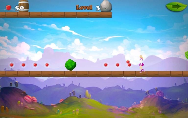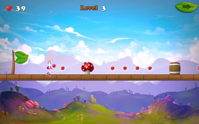 Miss Barbie would like to collect more cherries. But there are many hindrances; lock, toadstool, etc. Please help the cute miss barbie by running and jumping.
