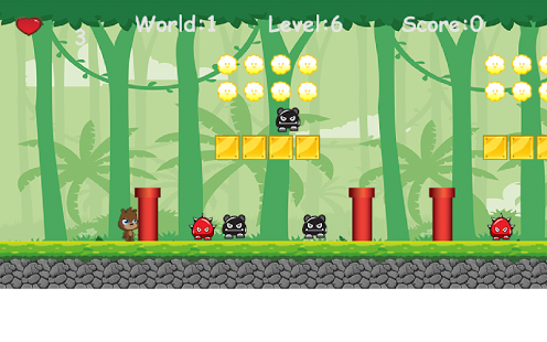 Jungle Bear Adventure this fun and amazing adventure game is better than ever and will surely be what you are looking for. Like side scrolling adventure that will rock you through 18 levels of challenging running and jumping. This retro-gaming classic will turn your Jungle Bear Adventure- loving heart on end! To play you simple touch the screen to jump and touch quickly twice to double jump. You can jump over your enemies to kill them and your goal is to guide Jungle Bear to the end. Download Jungle Bear now! It is a fun game for everyone. Try it out and enjoy!