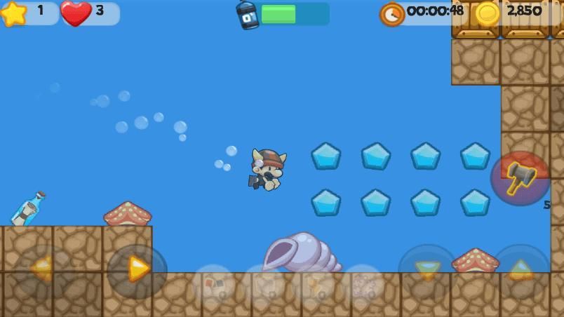 - Underground and water worlds, swim, jump and run.