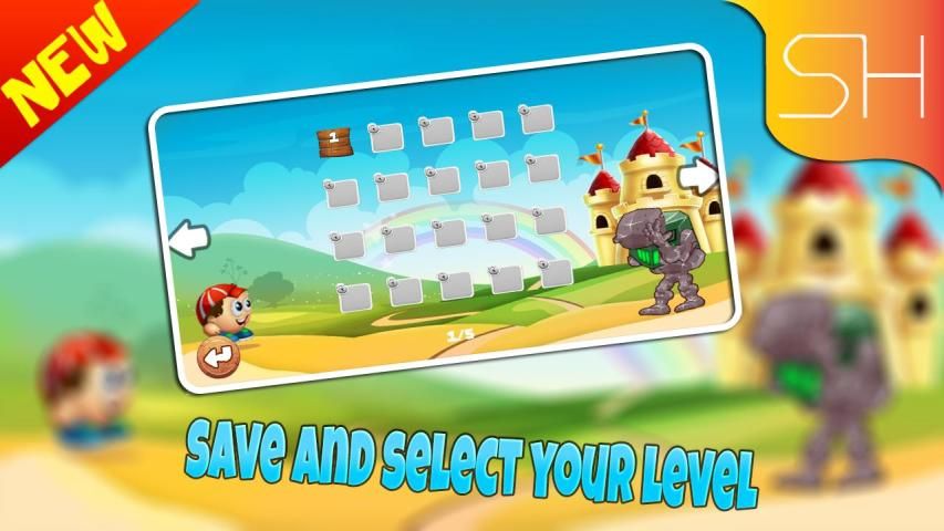You press the Start button and you pass to the levels list, then you choose the first level that is automatically opened, then it takes you directly to the game interface each consisting of a jump button to the right under it a fire button, and northward a move button explore forward and backward level, and at the top the timer and the gold coin jewels counter that most The hero lightweight got it now, all you have to do is press the button to move forward and jump over the pre heads of enemies to kill them wala, break swim the surprise wala boxes to get your gift, collect the largest number of gold coins and diamonds worlds, and overcome all obstacles to reach to raise the flag of the end of the level worlds, and enter the castle to move to the next level, the solution Zone, hedgehog, spider, green worm, and bird are all enemies that you must outrun to quickly pass the next level successfully.
