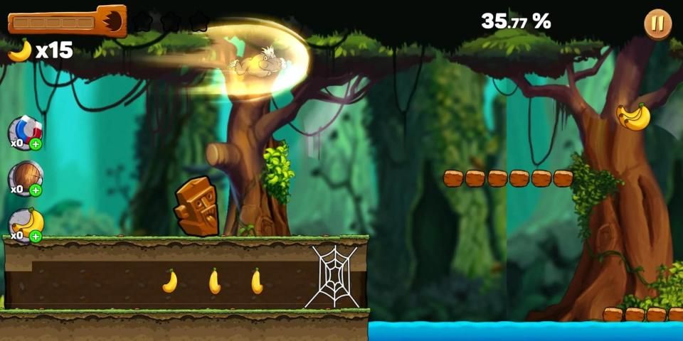 Rimba sangat berbahaya. Tolong bantu monyet berlari keluar dari hutan dan mengumpulkan lebih banyak pisang.