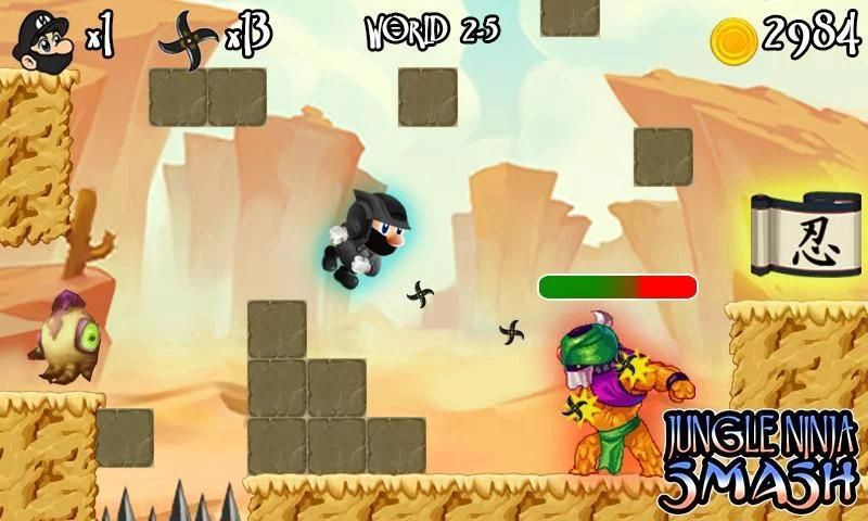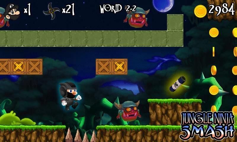 Jungle Ninja Smash adalah platform petualangan terbesar yang tersedia untuk toko bermain. Permainan telah dirancang dengan hati-hati untuk semua orang untuk bersenang-senang!