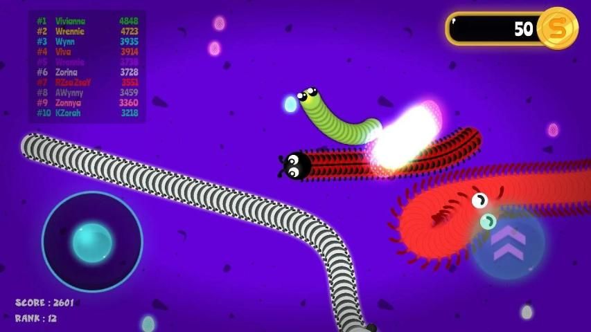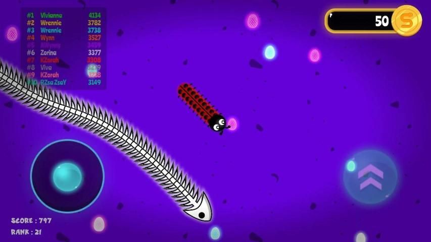 Controlling your Slink Slither Little Big Snake in Jungle Snake io is very easy, crawl your worm zone through the snake io arena using the joystick . The worm will continuously be crawling in the direction of your joystick pointer, so turning your crawl worm games is as simple as moving your finger skill serve as a quick speed boost, allowing you to get out of the way of enemy worms quickly. Jungle Little Big Snake.io games features Great Neon graphics with High Quality graphics , making this a safe Slink Slither game for you in any workplace . By sharing the Slink Slither game on social media, you can get more enemies and battle with them.